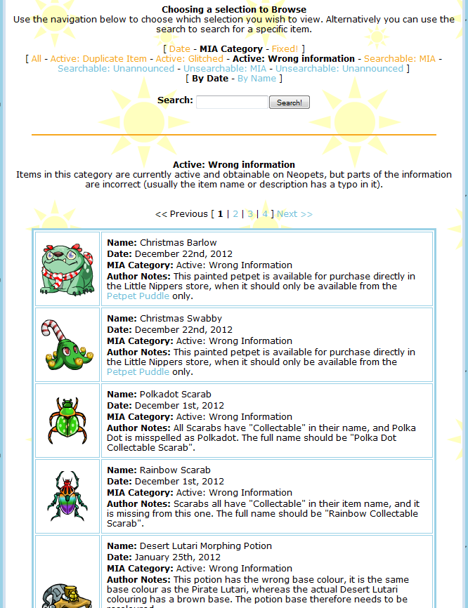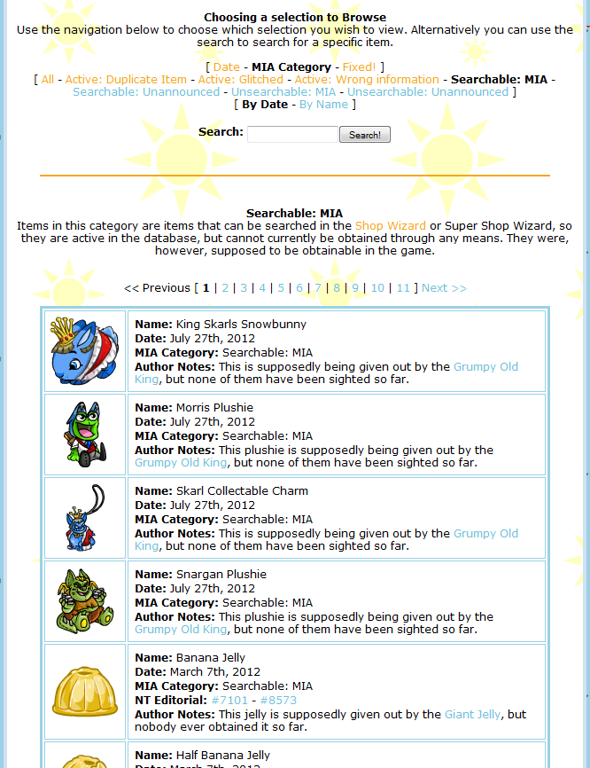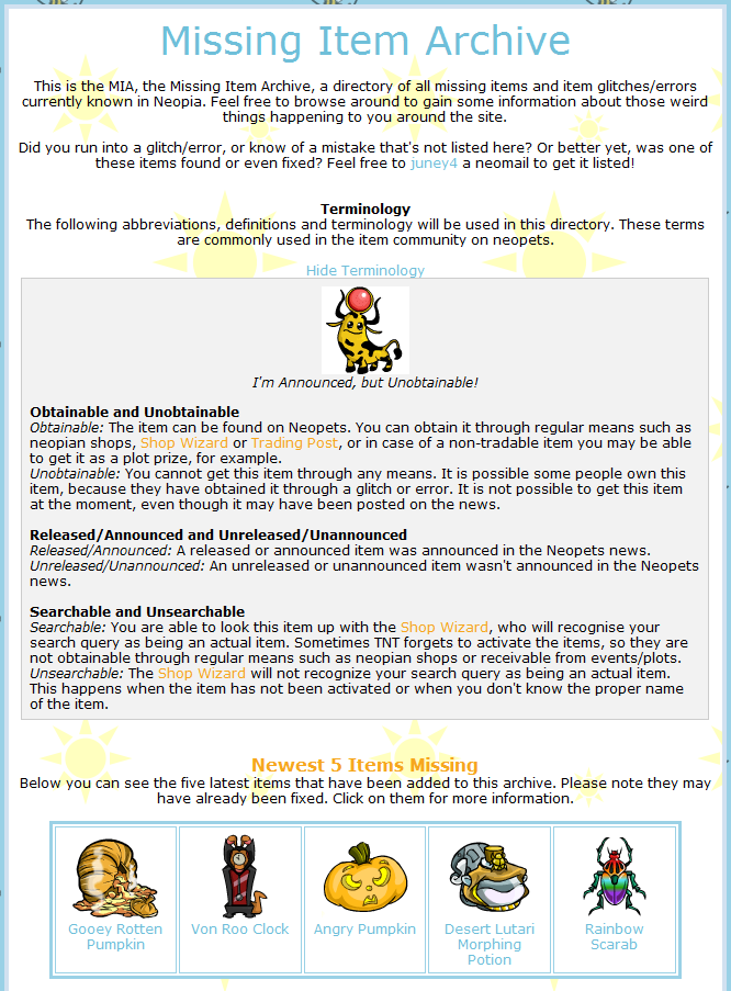Neopets – (SunnyNeo) Missing Item Archive